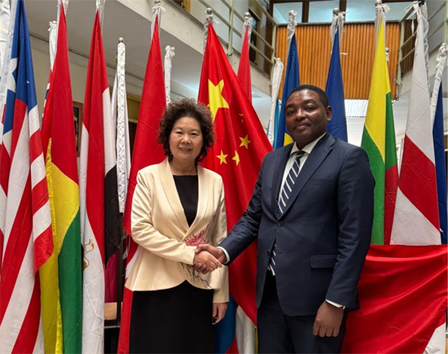黨委書記周保平與埃塞俄比亞外交部亞太事務(wù)司司長(zhǎng)Gebeyahu Ganga合影