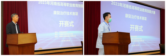 張進忠在致辭中首先對參加競賽的各參賽隊表示歡迎,并簡要介紹了學校建設(shè)發(fā)展情況。他講到,河南醫(yī)學高等?茖W校有71年辦學歷史,71年的建設(shè)發(fā)展,形成了辦學特色鮮明,專業(yè)布局合理,教學條件完善的高水平學校。學校是全國綠化先進單位,國家自然科學基金依托單位,省級文明校園(標兵)單位,是“十四五”時期教育強國推進工程職業(yè)院校,中國人民解放軍護理軍士定點培養(yǎng)院校。近年來學校堅持校企合作、產(chǎn)教融合,不斷深化教育教學改革,在國家和省級技能競賽、教材建設(shè)、教師團隊建設(shè)中成績突出。他指出,本次大賽對接行業(yè)標準、先進技術(shù)和診療過程,對促進醫(yī)教協(xié)同、崗課賽證綜合育人具有重要意義。學校作為承辦校,堅持“精彩、公平、專業(yè)、開放”的辦賽理念,全力以赴、盡心盡責,高水平高質(zhì)量做好賽事服務保障工作,確保大賽順利舉行。