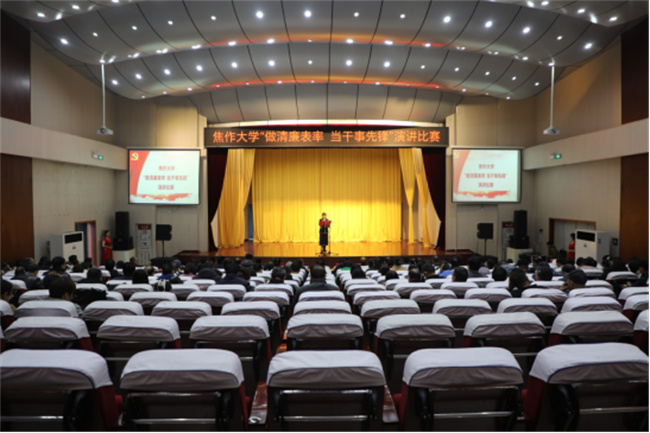“做清廉表率、當(dāng)干事先鋒”演講比賽是焦作大學(xué)2023年黨風(fēng)廉政教育月活動(dòng)的主要內(nèi)容之一,旨在扎實(shí)推進(jìn)“清廉校園”建設(shè)行動(dòng)“崗位廉政風(fēng)險(xiǎn)防控年”創(chuàng)建活動(dòng),教育引導(dǎo)廣大黨員干部擔(dān)當(dāng)作為、奮發(fā)進(jìn)取、遵紀(jì)守法、廉潔奉公,營(yíng)造人人尚廉敬廉護(hù)廉守廉校園文化氛圍。演講比賽在各黨總支和直屬黨支部組織初賽的基礎(chǔ)上,有16位選手脫穎而出入圍演講比賽決賽。比賽現(xiàn)場(chǎng),選手們個(gè)個(gè)精神煥發(fā)、激情高昂,有的講述大國(guó)與小家之間的清廉故事;有的講述廉潔家庭故事;有的講述廉潔從教、廉潔從業(yè)故事。16位選手從不同視域、不同層面挖掘廉潔元素、傳承廉潔文化,弘揚(yáng)清正廉潔、擔(dān)當(dāng)作為之時(shí)代新風(fēng)。