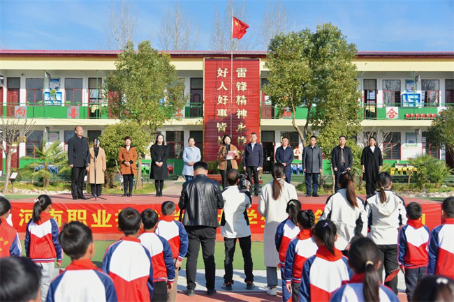 在朱耀環(huán)小學(xué),夏新顏代表學(xué)校捐贈(zèng)了價(jià)值3萬(wàn)元的文體用品,并寄語(yǔ)全體學(xué)生:一要樹(shù)立大志向,勇于逐夢(mèng)想。從小學(xué)先鋒、長(zhǎng)大做先鋒。眼中星光璀璨,向著夢(mèng)想奔跑,對(duì)未來(lái)充滿信心,做好學(xué)生、好孩子,好少年。二要胸懷大世界,學(xué)習(xí)伴成長(zhǎng)。保持對(duì)知識(shí)的渴望,對(duì)探索的興趣,勤于思考,多學(xué)多問(wèn),努力成長(zhǎng)為祖國(guó)建設(shè)、家鄉(xiāng)發(fā)展的有用之才、棟梁之材。三要養(yǎng)成好習(xí)慣,鍛煉好身體。加強(qiáng)體育鍛煉,爭(zhēng)做熱愛(ài)運(yùn)動(dòng)、陽(yáng)光自信的少年,努力成為德智體美勞全面發(fā)展的社會(huì)主義建設(shè)者和接班人。李曉勇和朱耀環(huán)小學(xué)校長(zhǎng)王艷霞對(duì)學(xué)校捐贈(zèng)慰問(wèn)表示感謝,并希望學(xué)校依托職業(yè)教育資源助力舞陽(yáng)教育事業(yè)發(fā)展。期間,學(xué)校國(guó)旗護(hù)衛(wèi)隊(duì)舉行了升旗儀式,學(xué)校馬克思主義學(xué)院、團(tuán)委授牌朱耀環(huán)小學(xué)大學(xué)生社會(huì)實(shí)踐基地和送教工作站,儀式在師生激情嘹亮的《讓我們蕩起雙槳》歌聲中結(jié)束。隨后,雙方師生開(kāi)展了豐富多彩的實(shí)踐活動(dòng)。