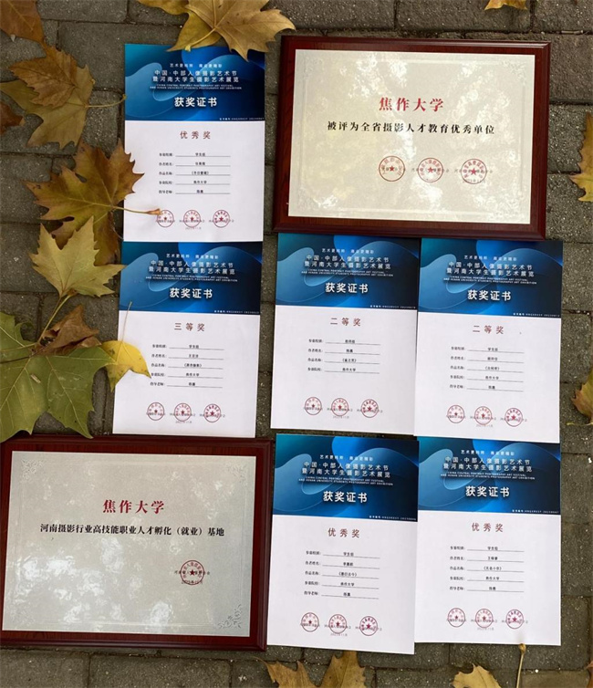 由于成績突出,焦作大學(xué)獲得了"全省攝影教育優(yōu)秀單位"、"河南攝影行業(yè)高技能職業(yè)人才孵化(就業(yè))基地"等榮譽(yù)。在眾多高校中,該校也是為數(shù)不多獲得此等榮譽(yù)的?圃盒。