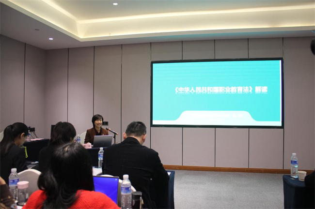 開班儀式結(jié)束后,重慶市教育科學(xué)研究院職成教研究所所長胡彥作《中華人民共和國職業(yè)教育法》專題解讀。胡彥從教育四要素和教育產(chǎn)出成果闡釋了職業(yè)教育高質(zhì)量發(fā)展的核心與要素,從新職業(yè)教育法頒布的意義、職業(yè)教育面臨的挑戰(zhàn)和在新發(fā)展階段下職業(yè)教育如何發(fā)揮主體作用等方面進行了解讀與分析。