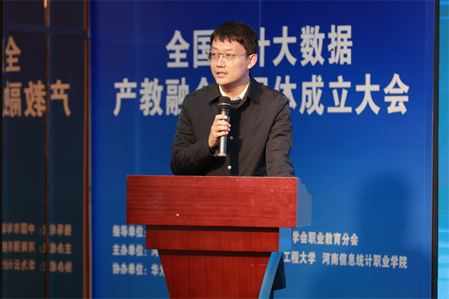 本次會議以數智賦能構建統(tǒng)計大數據人才培養(yǎng)生態(tài)為主題,探討新形勢下統(tǒng)計大數據產教融合共同體面臨的機遇和挑戰(zhàn)。河南信息統(tǒng)計職業(yè)學院作為發(fā)起單位,將以此次共同體成立為契機,通過打造共同體平臺,進一步促進產教融合的交流與合作,搭建產業(yè)界與教育界之間的橋梁,推動人才培養(yǎng)、技術創(chuàng)新和產業(yè)的升級,為全國統(tǒng)計大數據產教融合發(fā)展注入新的活力與動力。(河南信息統(tǒng)計職業(yè)學院供稿)