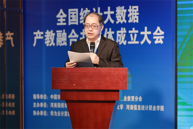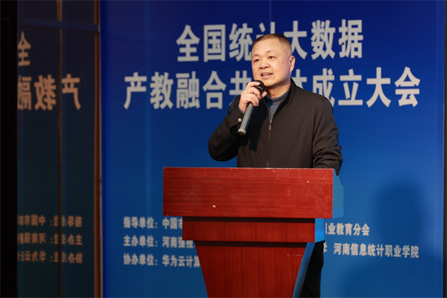 梁景予在致辭中表示,共同體成立之后學校將從以下幾方面進行探索:一是緊跟數據產業(yè)、吃透用好相關政策、充分利用政府提供的各項支持,確保共同體的發(fā)展與國家戰(zhàn)略相一致,推動共同體的健康發(fā)展;二是深化校企合作,豐富產教融合辦學形態(tài),拓展產教融合培養(yǎng)內容;三是要加強資源共享,促進共同體成員之間的信息交流和技術合作,共享優(yōu)質教育資源,強化實訓基地建設,提升整體教育教學水平。他指出河南信息統(tǒng)計職業(yè)學院作為發(fā)起單位,成立“全國統(tǒng)計大數據產教融合共同體”,致力于推動教育鏈、人才鏈、創(chuàng)新鏈、產業(yè)鏈深度融合,在面向新征程、新使命的過程中,發(fā)揮學科綜合優(yōu)勢,與各成員單位齊心協(xié)力探索“平臺共建、人才共育、研發(fā)共促、成果共享”的合作新范式。