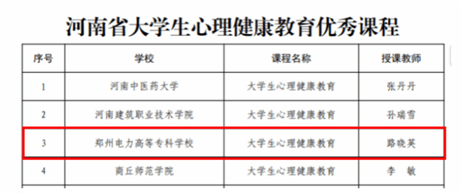 鄭州電力高等?茖W(xué)校心理健康教育工作獲多項(xiàng)榮譽(yù)