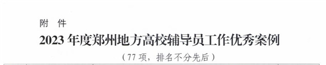 鄭州軟件職業(yè)技術(shù)學(xué)院在高校優(yōu)秀輔導(dǎo)員及輔導(dǎo)員工作優(yōu)秀案例評選活動(dòng)中獲佳績