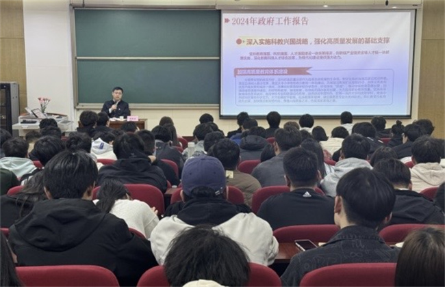 中新河南網(wǎng)3月13日電 團(tuán)結(jié)一心再進(jìn)發(fā),昂首闊步向未來。為全面貫徹黨的教育方針,引領(lǐng)廣大師生胸懷“國之大者”,勇于擔(dān)當(dāng)實現(xiàn)中華民族偉大復(fù)興中國夢的歷史重任,3月11日晚,鄭州職業(yè)技術(shù)學(xué)院黨委副書記、校長潘維成在5號教學(xué)樓105報告廳,為自動化與物聯(lián)網(wǎng)學(xué)院師生代表講授了一堂精彩而生動的“開學(xué)第一課”。
