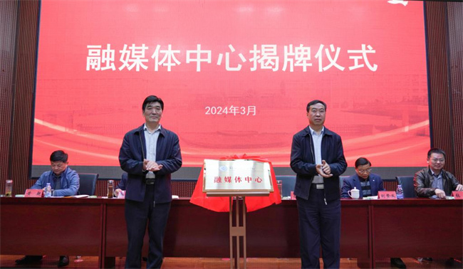 會上,融媒體中心揭牌成立。黨委書記趙榴明、校長呂振合為融媒體中心揭牌。