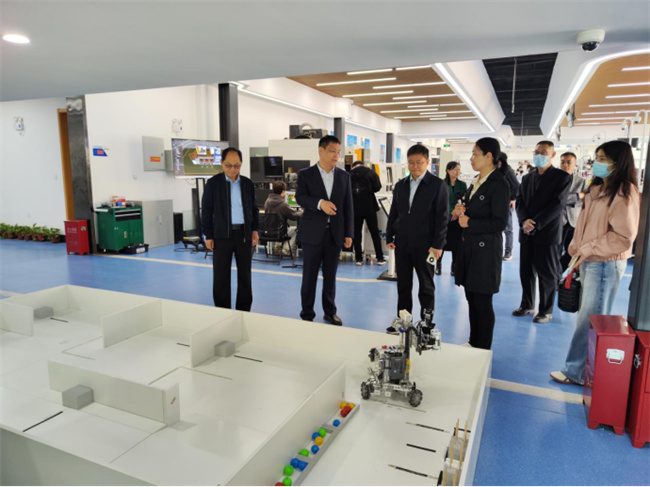 在參加交流會期間,劉延賓一行于9日上午,在鄭州職業(yè)技術(shù)學院院長潘濰成的陪同下,參觀該校梅賽德斯-奔馳中國職業(yè)教育鄭州基地、工業(yè)機器人工程技術(shù)中心、超硬材料及制品工程技術(shù)中心、生命健康研究院等多個專業(yè)實訓室。雙方就骨干人才培養(yǎng)、專業(yè)群建設(shè)、產(chǎn)教融合等進行了深入交流。