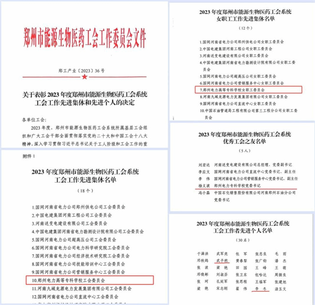 鄭州電力高等專科學校工會喜獲鄭州市能源生物醫(yī)藥工會多項榮譽