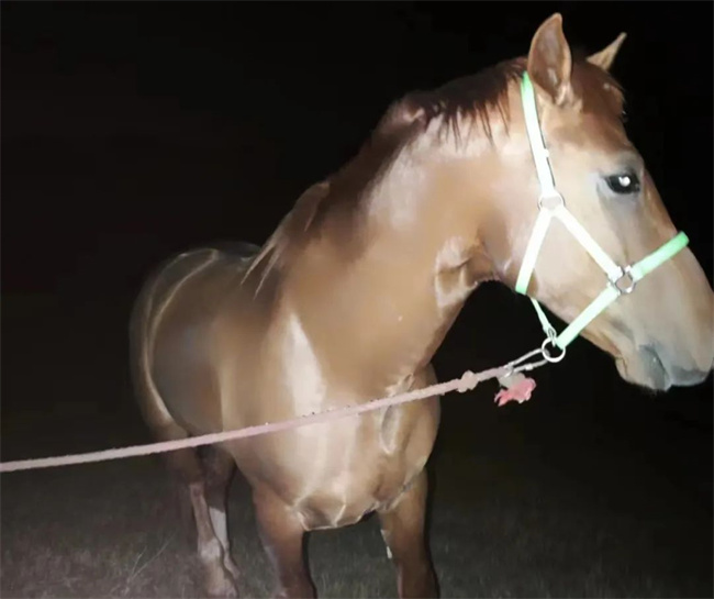 “迎面跑過來一個黑影,走近了才看清楚是一匹馬。”馬賢輝說,馬的韁繩拖著地,他猜到可能是走失的馬。“太不安全了,畢竟是大路,路燈又少,晚上經常會大貨車從這里過。”想到交通隱患,他試探著對馬喊了一聲,沒想到馬兒真的停下了。于是,他就近將馬兒拴在樹上,并撥打了110報警電話。大概20分鐘后,警察叔叔趕來。