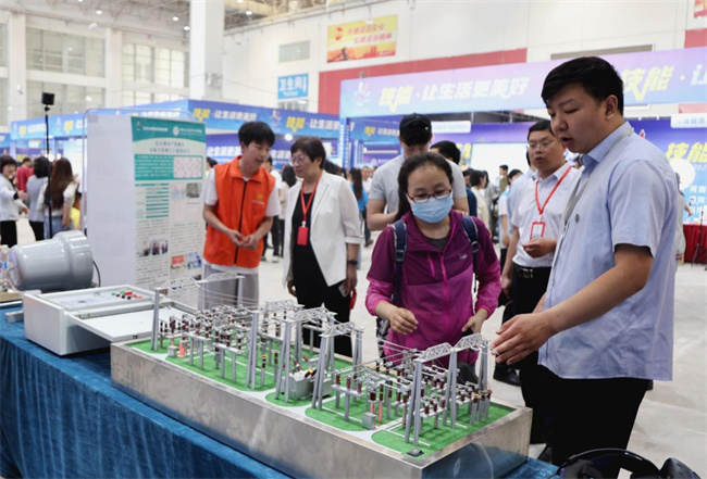 展會(huì)期間,河南省教育廳黨組成員、副廳長(zhǎng)張國(guó)強(qiáng)來(lái)到鄭州電力高等?茖W(xué)校展臺(tái),詳細(xì)了解新能源類專業(yè)設(shè)置、校企合作等方面的工作部署,肯定了鄭州電力高等?茖W(xué)校以電力行業(yè)需求為導(dǎo)向、不斷優(yōu)化專業(yè)設(shè)置,與電力行業(yè)同頻共振、不斷加大教學(xué)改革,探索出了行之有效的產(chǎn)教融合新路徑。