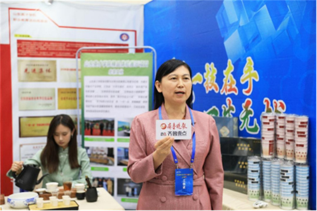 在展覽現(xiàn)場,山東英才學(xué)院展區(qū)以其獨(dú)特的“北茶文化”體驗(yàn)展示項(xiàng)目吸引了大量參觀者駐足。該項(xiàng)目通過茶藝表演、茶品品鑒、茶文化直播等多種形式,全方位展示了茶文化的深厚底蘊(yùn)和獨(dú)特魅力。