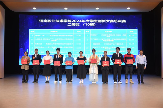 中新河南網(wǎng)5月18日電(尹霞) 5月16日下午,河南職業(yè)技術(shù)學(xué)院2024年大學(xué)生創(chuàng)新大賽總決賽在音樂廳舉行,9個二級學(xué)院的20支創(chuàng)業(yè)團隊同臺競技。大賽特別邀請到國內(nèi)知名投資人、創(chuàng)新創(chuàng)業(yè)專家和高校雙創(chuàng)導(dǎo)師等9位專家擔(dān)任評委。校長夏新顏、副校長任楓軒,校團委、教務(wù)處、科技開發(fā)處和各二級學(xué)院相關(guān)負(fù)責(zé)人及項目指導(dǎo)教師一同觀摩比賽。