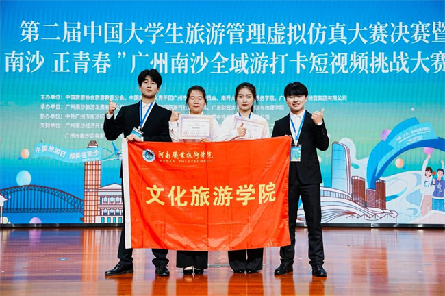 中新河南網(wǎng)5月22日電(張沈玄)5月15日至19日,第二屆中國(guó)大學(xué)生旅游管理虛擬仿真大賽決賽在廣東舉行。經(jīng)激烈角逐,河南職業(yè)技術(shù)學(xué)院文化旅游學(xué)院李金明、郭騰達(dá)、劉雯迪和晁晨晨等4位同學(xué)組成的參賽隊(duì)脫穎而出,榮獲大賽一等獎(jiǎng);趙翔獲“優(yōu)秀指導(dǎo)教師”稱(chēng)號(hào)。