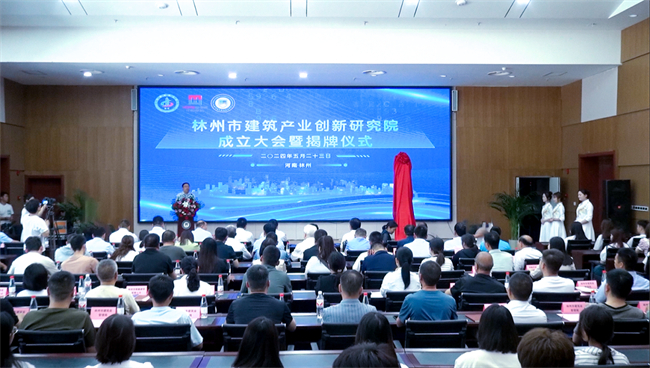 林州市市長田元飛宣布林州市建筑產(chǎn)業(yè)創(chuàng)新研究院成立。