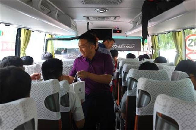 在“愛心專車”上,校長劉全璽與畢業(yè)生親切交流,溫情話別,為畢業(yè)生送上臨別禮物。劉校長祝賀同學們順利畢業(yè),囑托同學們;貋砜纯矗膭钔瑢W們在新的起點上踔厲奮發(fā)、篤行不怠,以最好的成績?yōu)槟感T龉馓聿剩瑸閲液蜕鐣鞒鲐暙I。