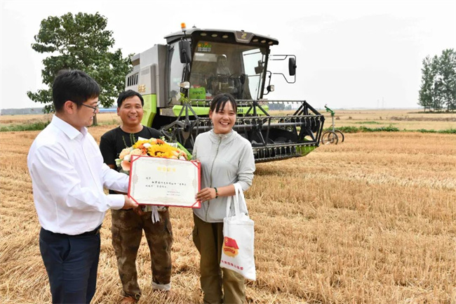 “在異鄉(xiāng)麥田里被授予這個榮譽,真令我難忘。我會更加努力,一邊幫助我爸開好收割機,一邊把助農直播更好地做下去。”