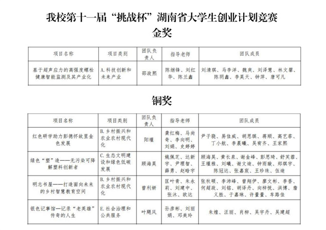 據(jù)悉,本屆“挑戰(zhàn)杯”湖南省大學(xué)生創(chuàng)業(yè)計(jì)劃競(jìng)賽由共青團(tuán)湖南省委、湖南省教育廳、湖南省人力資源和社會(huì)保障廳、湖南省科學(xué)技術(shù)協(xié)會(huì)、湖南財(cái)信金融控股集團(tuán)有限公司、湖南省學(xué)生聯(lián)合會(huì)共同主辦,競(jìng)賽以“青春為中國式現(xiàn)代化挺膺擔(dān)當(dāng)”為主題,自今年3月啟動(dòng)以來,得到全省高校的積極響應(yīng),吸引了超過100所高校的20萬余名師生積極參與,809件作品入圍省賽。經(jīng)評(píng)審,最終確定247件作品入圍終審決賽,其中本科組56件作品榮獲金獎(jiǎng)。