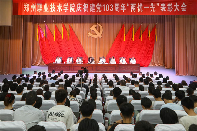 中新河南網(wǎng)7月1日電 7月1日上午,鄭州職業(yè)技術(shù)學(xué)院慶祝中國共產(chǎn)黨成立103周年“兩優(yōu)一先”表彰大會在信息圖文中心報告廳舉行,黨政領(lǐng)導(dǎo)班子成員出席會議,教職工黨員代表、入黨積極分子代表近500人參加會議。會議由黨委副書記、校長潘維成主持。