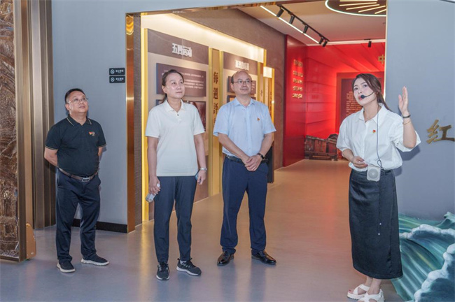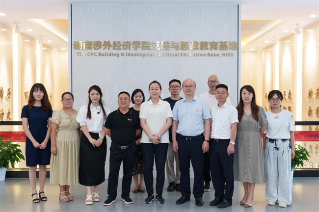 中新河南網(wǎng)7月29日電(翦陽(yáng)鑫) 為落實(shí)“立德樹人”根本任務(wù),將黨的創(chuàng)新理論、百年歷史和中國(guó)特色社會(huì)主義偉大實(shí)踐全面融入教育教學(xué)全過(guò)程,進(jìn)一步加強(qiáng)大思政課建設(shè),7月25日,湖南財(cái)政經(jīng)濟(jì)學(xué)院黨委副書記蘇玲、馬克思主義學(xué)院黃建躍、部分教師代表到湖南涉外經(jīng)濟(jì)學(xué)院黨建與思政教育基地調(diào)研交流。湖南涉外經(jīng)濟(jì)學(xué)院黨委書記、督導(dǎo)專員楊念,校黨委委員、副校長(zhǎng)鞠晨曦,校黨委宣傳部部長(zhǎng)戴薇參加此次活動(dòng)。