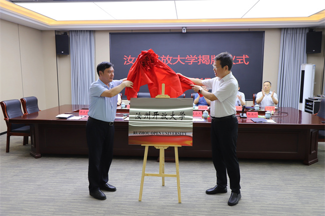 儀式上,魯書喜和劉國(guó)朝共同為汝州開放大學(xué)揭牌。