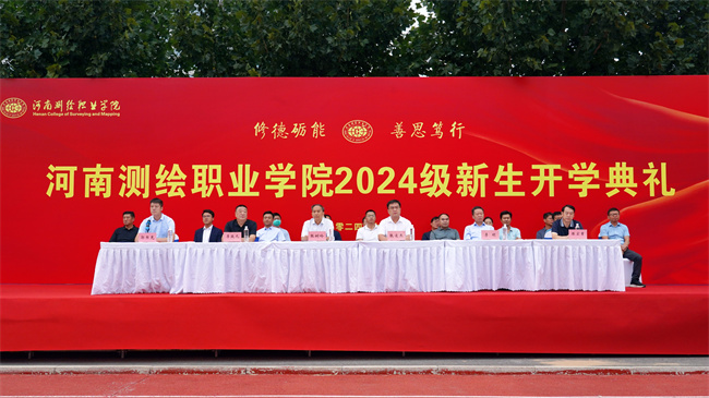 中新河南網(wǎng)9月14日電(文/趙亞星 圖/楊國政 鄭嶸淇 楊笑塵) 9月13日,河南測繪職業(yè)學(xué)院在象湖校區(qū)運動場舉行2024級新生開學(xué)典禮。校黨委書記張樹嶺,黨委副書記、校長張凌杰,黨委副書記、工會主席李駿元,黨委委員、副校長李明,黨委委員、紀(jì)委書記郭書克,黨委委員、副校長陳宏章出席典禮。相關(guān)職能部門負(fù)責(zé)人、各院系負(fù)責(zé)人、新生班輔導(dǎo)員及全體2024級新生參加典禮。開學(xué)典禮由郭書克主持。