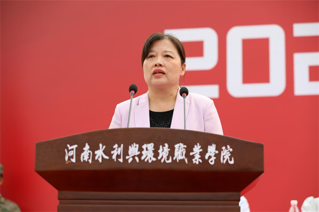 校長(zhǎng)李志萍代表學(xué)校向新同學(xué)表示熱烈歡迎,表示從今天起,大家將以“水環(huán)人”的身份開(kāi)啟人生嶄新篇章,成為“明責(zé)、守信、敬業(yè)、力行”校訓(xùn)的踐行者和傳承者,希望同學(xué)們努力學(xué)習(xí),苦練本領(lǐng),不負(fù)青春韶華,不負(fù)時(shí)代重任,不負(fù)國(guó)家重托。