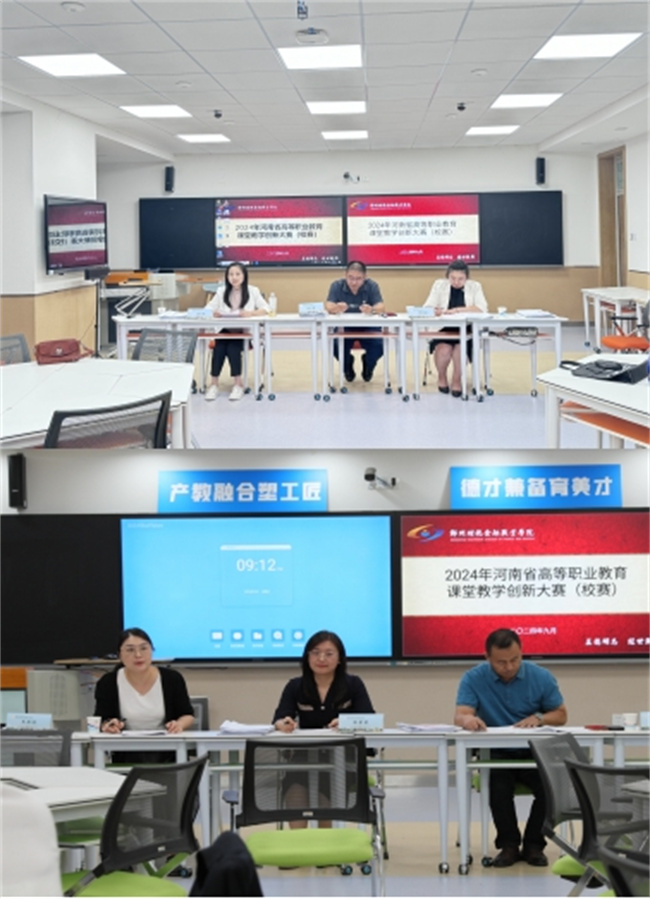 學(xué)校黨委高度重視本次課堂教學(xué)創(chuàng)新大賽,特邀河南經(jīng)貿(mào)職業(yè)學(xué)院劉正君、河南交通職業(yè)技術(shù)學(xué)院薛雯霏、鄭州旅游職業(yè)學(xué)院陳凌凌、河南農(nóng)業(yè)職業(yè)學(xué)院陳星星、鄭州鐵路職業(yè)技術(shù)學(xué)院蔣會哲以及河南交通職業(yè)技術(shù)學(xué)院王亞瓊等6位國賽教學(xué)能力比賽獲獎教師及相關(guān)專家擔(dān)任評委。