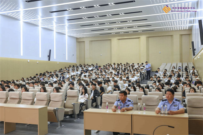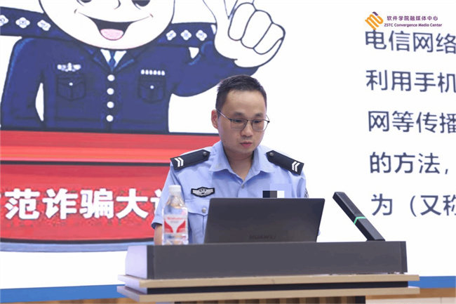 中新河南網(wǎng)9月27日電(文/吳志軒 圖/劉思源) 為進(jìn)一步提高學(xué)生的網(wǎng)絡(luò)電信詐騙識(shí)別和防范能力,維護(hù)同學(xué)們的切身利益,預(yù)防各類網(wǎng)絡(luò)電信詐騙事件,營(yíng)造和諧平安的校園環(huán)境。9月26日下午,鄭州軟件職業(yè)技術(shù)學(xué)院保衛(wèi)處、學(xué)生工作處聯(lián)合八千派出所在學(xué)校舉辦了預(yù)防電信詐騙知識(shí)講座。鄭州市公安局航空港分局八千派出所民警吳迪擔(dān)任主講嘉賓。