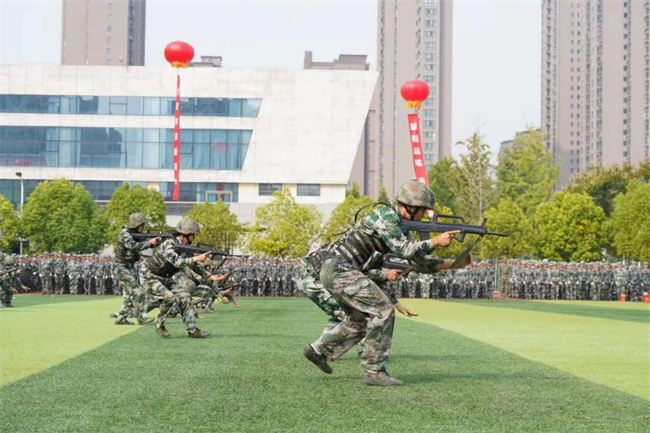 大會在莊嚴的國歌聲中拉開序幕,經歷軍訓的4300名新生昂首挺胸,步履鏗鏘,活力飛揚,彰顯無限激情與青春本色。學子們以飽滿的精神、挺拔的軍姿、整齊的步伐和洪亮的口號,展現(xiàn)出令行禁止的作風與堅韌不拔的意志。匯報表演環(huán)節(jié),擒體拳、匕首操、戰(zhàn)術表演方陣陸續(xù)出場,他們精神抖擻、英姿颯爽、氣勢如虹,贏得全場師生熱烈掌聲。黨委副書記董娣宣讀2024級軍訓工作表彰決定,校領導及在場嘉賓為獲獎的集體和個人頒獎,勉勵受表彰的集體和個人珍惜榮譽,百尺竿頭更進一步。