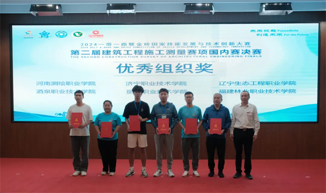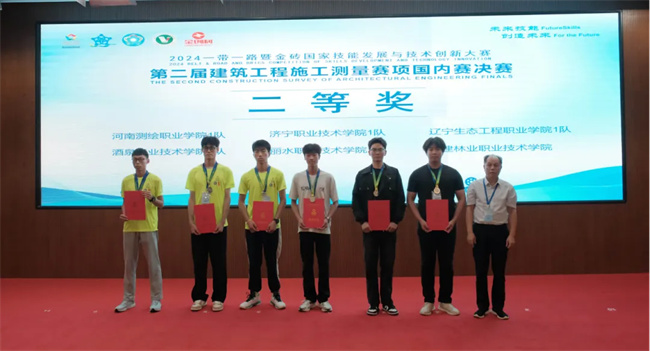 中新河南網(wǎng)10月1日電(孫樹(shù)芳) 9月23日,2024一帶一路暨金磚國(guó)家技能發(fā)展與技術(shù)創(chuàng)新大賽建筑工程施工測(cè)量賽項(xiàng)(高職組)決賽在江西應(yīng)用職業(yè)技術(shù)學(xué)院圓滿落幕,來(lái)自25個(gè)省市65所高職院校的120支參賽隊(duì)伍240名選手同場(chǎng)比拼,河南測(cè)繪職業(yè)學(xué)院由測(cè)繪工程系書記賴學(xué)軍帶隊(duì)參加該項(xiàng)比賽。在為期3天共3個(gè)項(xiàng)目的激烈角逐中,該校參賽團(tuán)隊(duì)(由王建設(shè)、周榮、孫樹(shù)芳、李俊寶擔(dān)任指導(dǎo)教師,羅通、張宏達(dá)、王帥昌、高登科作為參賽選手)克服困難、沉著應(yīng)戰(zhàn),榮獲二等獎(jiǎng)1項(xiàng)、三等獎(jiǎng)1項(xiàng),周榮、李俊寶兩位老師榮獲優(yōu)秀指導(dǎo)老師,學(xué)校榮獲優(yōu)秀組織獎(jiǎng)。