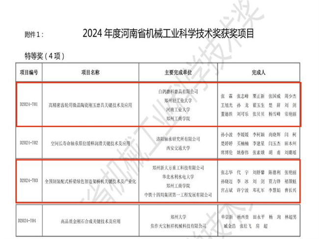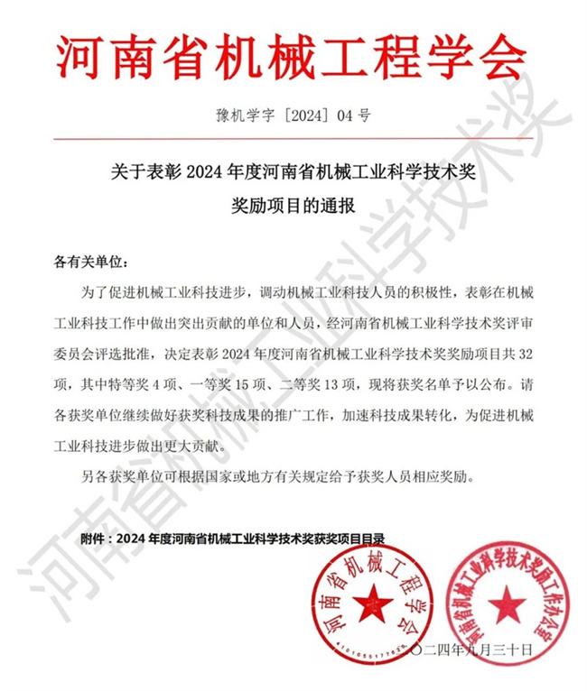 中新河南網(wǎng)10月11日電(劉劍) 近日,2024年河南省機械工業(yè)科學技術(shù)獎評選結(jié)果揭曉,全省共4個項目成果獲批特等獎,鄭州工商學院聯(lián)合校企合作企業(yè)及兄弟院校聯(lián)合申報的2個項目均獲特等獎,填補了學校在該領(lǐng)域的空白,實現(xiàn)了歷史性突破。