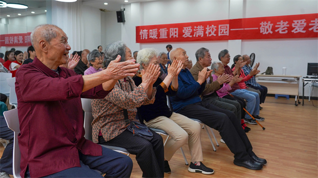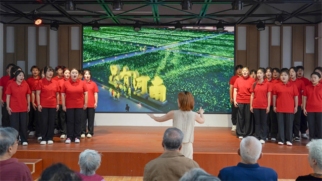 校團(tuán)委、藝術(shù)系組織師生編排歌曲、舞蹈等節(jié)目,充分展現(xiàn)師生的才藝與風(fēng)采,進(jìn)一步豐富了退休教師的文化生活,營造出歡樂祥和的氛圍。退休教師茹良勤吹奏紅色傳統(tǒng)歌曲,增強(qiáng)了學(xué)生愛黨、愛祖國、愛社會(huì)主義的堅(jiān)定信念。