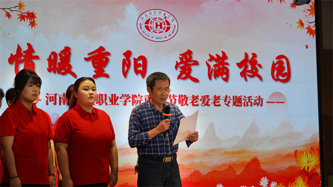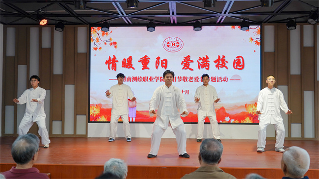 中新河南網(wǎng)10月12日電 秋風(fēng)送爽,丹桂飄香。為大力弘揚(yáng)中華民族尊老、敬老、愛老、助老的傳統(tǒng)美德,持續(xù)提升長者的幸福感、歸屬感、獲得感,10月11日,河南測(cè)繪職業(yè)學(xué)院宣傳統(tǒng)戰(zhàn)部、關(guān)工委、工會(huì)、團(tuán)委、藝術(shù)系、體育系聯(lián)合開展了“情暖重陽,愛滿校園”敬老愛老在行動(dòng)專題活動(dòng)。