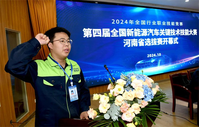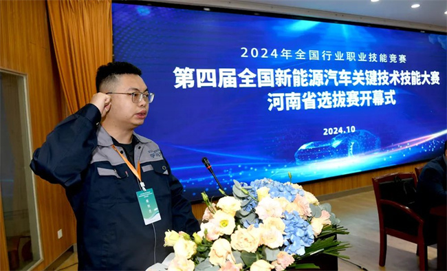 中新河南網10月13日電(王飛龍) 10月11日—12日,第四屆全國新能源汽車關鍵技術技能大賽河南省選拔賽在新鄉(xiāng)職業(yè)技術學院舉辦。10月11日上午開幕式在實驗樓一樓階梯教室舉行。河南省人力資源和社會保障廳職業(yè)能力建設處處長姚磊,新鄉(xiāng)市人力資源和社會保障局黨組書記、局長劉建學,河南省職業(yè)技能等級評價指導中心副主任支聯(lián)峰出席開幕式,開幕式由省人力資源社會保障廳職業(yè)能力建設處副處長朱匯海主持。