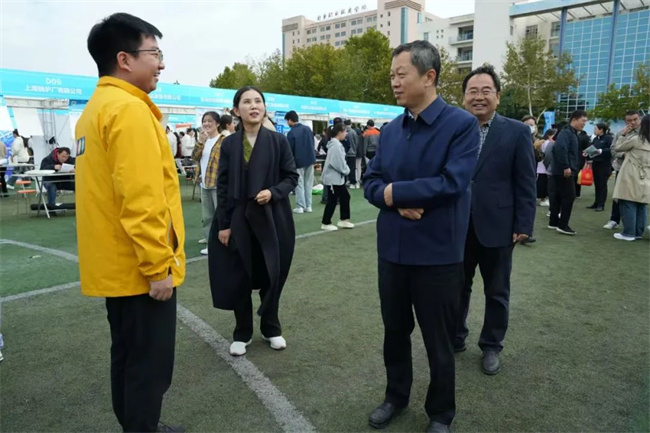 校黨委書記張林,副校長原淑慧一行來到招聘現(xiàn)場,與用人單位深入交流,了解各單位用人需求,聽取用人單位對學(xué)校人才培養(yǎng)、專業(yè)建設(shè)、就業(yè)指導(dǎo)服務(wù)等方面的意見與建議。詢問畢業(yè)生就業(yè)意向,勉勵大家找準(zhǔn)個人定位,充分發(fā)揮專業(yè)優(yōu)勢,腳踏實地,早日實現(xiàn)個人理想。