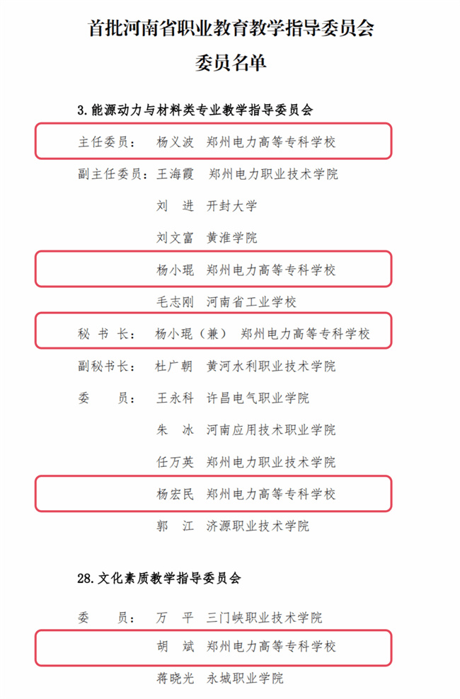 鄭州電力高等?茖W(xué)校4人入選首批河南省職業(yè)教育教學(xué)指導(dǎo)委員會(huì)