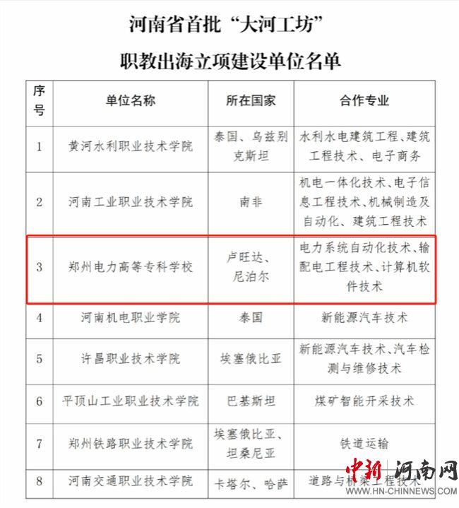 鄭州電力高等?茖W(xué)校喜獲河南省首批“大河工坊”職教出海立項(xiàng)建設(shè)單位