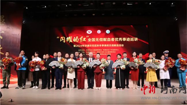 巡講結(jié)束后,無償獻(xiàn)血志愿者代表接受同學(xué)們致敬,其中護(hù)理2303班張豐宇作為無償獻(xiàn)血志愿者的青年大學(xué)生代表與其他各行業(yè)代表一同上臺接受展播致敬。