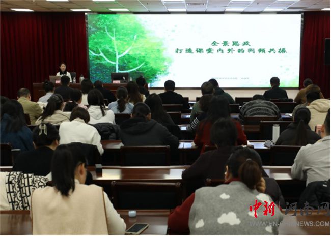 全景思政——打造課堂內(nèi)外同頻共振。河南農(nóng)業(yè)大學文法學院黨委副書記、全國高校輔導員年度人物提名獎獲得者朱瑞萍老師立足自身學生工作實際,結(jié)合輔導員工作成長發(fā)展,融入省賽國賽參與經(jīng)驗,從“全景視角——思政工作的時代訴求”“全面發(fā)展——青年學生的成長需求”“三全育人——高校思政的實踐探索”三個方面進行了全面闡釋,并寄語學校輔導員努力做學生成長成材的人生導師和健康生活的知心朋友,鼓勵輔導員從理論學習到工作實踐,讓“知心朋友”多些引領(lǐng)力;從日常管理到價值引領(lǐng),讓“傳道師者”更具吸引力;從傾聽陪伴到成長筑基,讓“信仰之花”延續(xù)生命力。