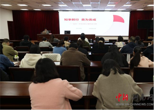 凝聚共識——做有溫度的輔導員,共筑育人新陣地。學生工作部部長賈艷以《知事躬行,善為善成——“一站式”學生社區(qū)之輔導員工作》為題,介紹了“一站式”學生社區(qū)建設(shè)背景、主要任務(wù),結(jié)合學校“一站式”學生社區(qū)建設(shè)情況從輔導員職責、具體工作、有關(guān)要求等方面詳細闡述,希望全體學工人員在學校“一站式”學生社區(qū)建設(shè)工作中做到認識到位、責任到位、工作到位,履行好值班值守、開展好學生活動、解決好學生急難愁盼問題、處理好可能出現(xiàn)的突發(fā)事件。