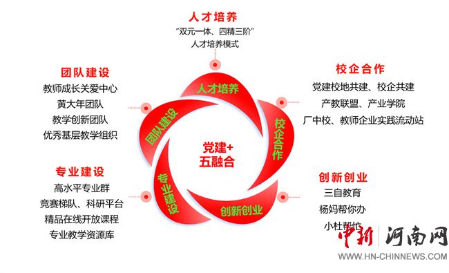 學(xué)校實施黨建+,把黨建與校企合作、團隊建設(shè)、人才培養(yǎng)、專業(yè)建設(shè)、創(chuàng)新創(chuàng)業(yè)進行融合,打造五個品牌,建設(shè)效果顯著。學(xué)校獲評全省高校“融媒體 + 育人”工作試點單位,“青春新職”新媒體品牌連續(xù)四年榮獲全國優(yōu)秀可視化融媒團隊,校團委被授予“全國五四紅旗團委”稱號,數(shù)控技術(shù)學(xué)院教師黨支部獲評“全國黨建工作樣板支部”培育創(chuàng)建單位。