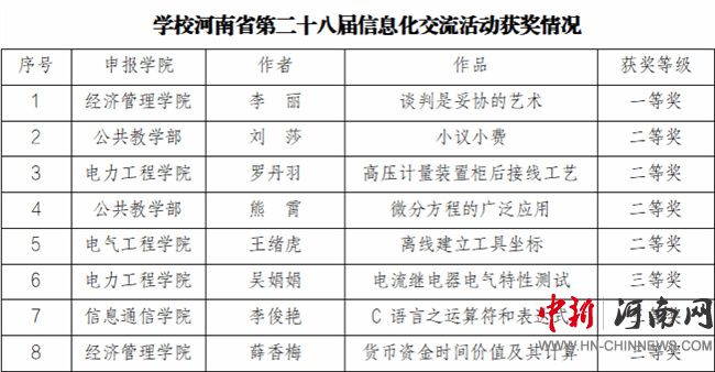 鄭州電力高等?茖W(xué)校在河南省第二十八屆教育教學(xué)信息化交流活動(dòng)中喜獲佳績