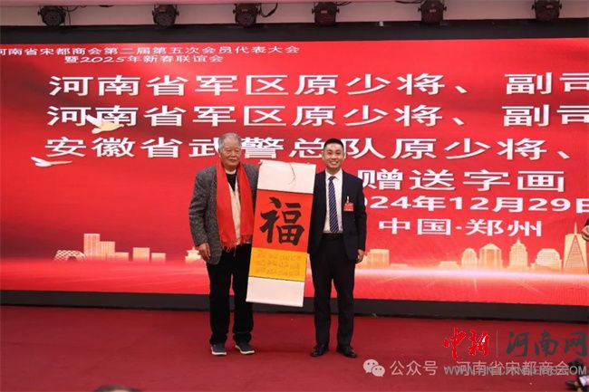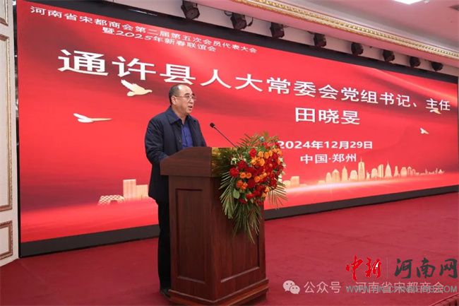 中新河南網(wǎng)12月31日電 2024年12月29日,河南省宋都商會(huì)第二屆第五次會(huì)員代表大會(huì)暨2025年新春聯(lián)誼會(huì)在鄭州盛世民航大酒店隆重舉行。河南省工商聯(lián)副主席馬躍峰,通許縣人大常委會(huì)主任田曉旻;河南省軍區(qū)原少將、副司令員王太順,河南省軍區(qū)原少將、副司令員楊鳳海,安徽省武警總隊(duì)原少將、副司令員馮文成;河南省人民政府資深參事、安陽(yáng)市人民政府原副市長(zhǎng)肖繼業(yè),信陽(yáng)軍區(qū)原大校、副司令員張中廷,原北京軍區(qū)鄭州辦事處大校、主任李克俊,河南省總工會(huì)副主席黃健,河南省供銷社原副主任王清良,河南省直機(jī)關(guān)事務(wù)管理局副局長(zhǎng)毛衛(wèi)豐;河南省發(fā)改委大項(xiàng)辦原主任張行忠、河南省監(jiān)獄管理局原獄政處長(zhǎng)孫家合、鄭州市公安局十八里河分局原政委聶學(xué)鋒、河南省交通職業(yè)技術(shù)學(xué)院原副院長(zhǎng)陳振峰以及社會(huì)各界精英會(huì)員代表等近300人參加會(huì)議。
