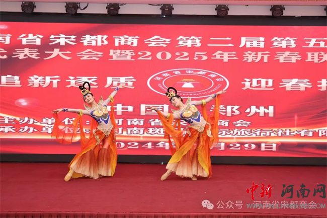 主持人劉書含對(duì)所有贊助本次年會(huì)伴手禮、抽獎(jiǎng)禮品、白酒、紅酒等贊助單位和會(huì)員企業(yè)表示了感謝。新春團(tuán)拜會(huì)的歡樂氛圍將大會(huì)推向高潮,精彩的文藝節(jié)目輪番上演,歡快的舞蹈等贏得陣陣掌聲與歡呼聲;激動(dòng)人心的抽獎(jiǎng)環(huán)節(jié)更是讓現(xiàn)場(chǎng)氣氛沸騰,大家在歡聲笑語(yǔ)中感受到了濃濃的過(guò)年氣息,也增進(jìn)了會(huì)員間的情誼與凝聚力。在《難忘今宵》的大合唱中河南省宋都商會(huì)第二屆第五次會(huì)員大會(huì)暨2025新春聯(lián)誼會(huì)圓滿成功。所有的歡笑與感動(dòng)、榮耀與希望都被定格在這一刻。回顧過(guò)去,心存感恩;展望未來(lái),信心滿懷!河南省宋都商會(huì)將繼續(xù)凝聚力量、團(tuán)結(jié)一心,共同迎接更加美好的明天!(河南省宋都商會(huì)供稿)