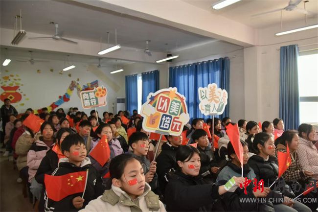 河南職業(yè)技術(shù)學(xué)院師生文化團(tuán)隊在舞陽縣開展美育藝術(shù)課堂活動現(xiàn)場