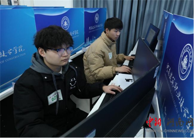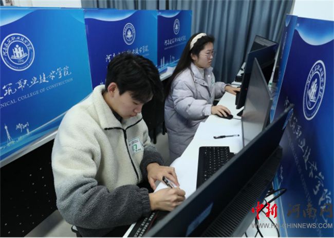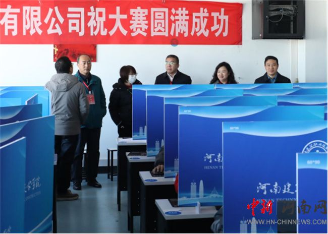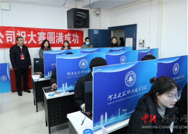 河南建筑職業(yè)技術(shù)學(xué)院副校長(zhǎng)趙肖丹、監(jiān)督員河南質(zhì)量工程職業(yè)學(xué)院建筑工程學(xué)院書記李建沛、裁判長(zhǎng)商丘職業(yè)技術(shù)學(xué)院建筑學(xué)院院長(zhǎng)史華巡視考場(chǎng)