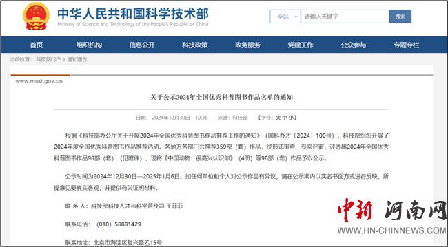 根據(jù)《科技部辦公廳關(guān)于開展2024年全國優(yōu)秀科普圖書作品推薦工作的通知》(國科辦才〔2024〕100號),科技部組織開展了2024年度全國優(yōu)秀科普圖書作品推薦活動(dòng)。各地方各部門共推薦359部(套)作品,經(jīng)形式審查、專家評審,評選出2024年全國優(yōu)秀科普圖書作品98部(套)。科普圖書是科普工作的重要載體,對普及科學(xué)知識(shí)、弘揚(yáng)科學(xué)精神、傳播科學(xué)思想發(fā)揮著不可替代的重要作用,而科研人員的專業(yè)性可以確保圖書的科學(xué)性,其獨(dú)有的研究經(jīng)歷可以帶給讀者更多的啟迪。今后,該校將鼓勵(lì)更多的教學(xué)科研人員投身科普工作,創(chuàng)作更多優(yōu)秀作品,以激勵(lì)青少年投身科學(xué)事業(yè),為推動(dòng)全民科學(xué)素質(zhì)提升貢獻(xiàn)力量。(黃河水利職業(yè)技術(shù)學(xué)院供稿)