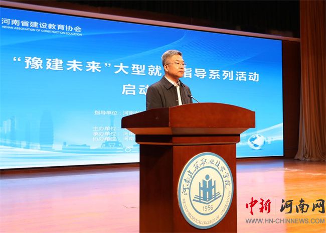 在啟動儀式上,省教育廳學生處四級調(diào)研員錢鵬俊作講話。他指出,此次活動是貫徹落實省委、省政府關于就業(yè)、創(chuàng)業(yè)決策部署的具體行動,是推動建筑行業(yè)人才培養(yǎng)的關鍵舉措。他強調(diào),就業(yè)是民生之本,河南建院作為全省唯一一所公辦建筑類高等職業(yè)學校,堅持以“雙高”工程建設為抓手,持續(xù)深化“三教”改革,緊密結(jié)合市場需求,拓寬就業(yè)渠道,優(yōu)化專業(yè)設置,加強實踐教學,進一步提高大學生綜合素質(zhì)和技能。希望學校以辦好人民滿意的教育為目標,始終把就業(yè)工作當作學校生存與發(fā)展的生命線,在幫助學生樹立正確的職業(yè)規(guī)劃意識,明確專業(yè)學習方向,掌握實用就業(yè)技能,培養(yǎng)學生綜合素質(zhì)和創(chuàng)造能力的同時,積極搭建技術(shù)協(xié)同創(chuàng)新平臺,努力為畢業(yè)生求職就業(yè)保駕護航。鼓勵同學們在強國建設的征程中磨礪成長,展現(xiàn)青年學子的風采與擔當。